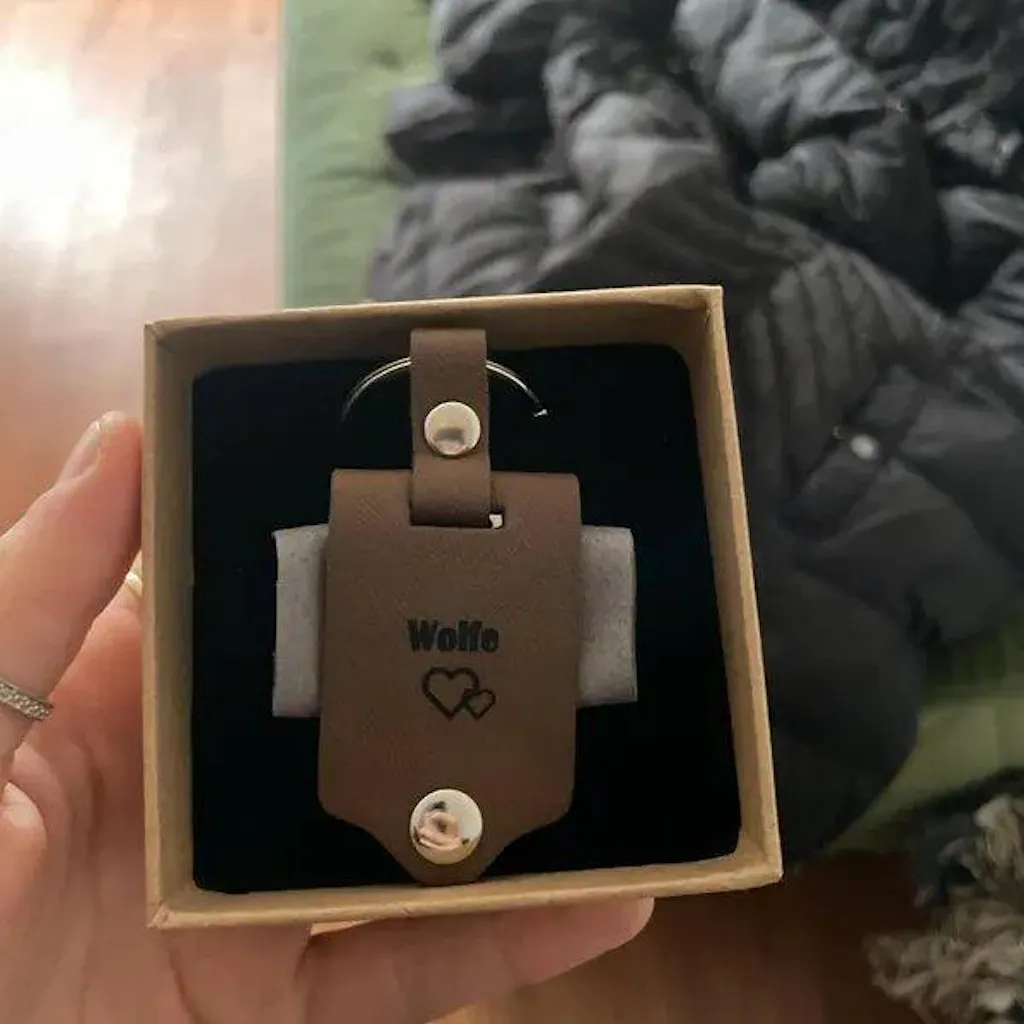 Keep your memories close and your keys in style with this personalized leather keychain—a perfect gift or keepsake for everyday life.