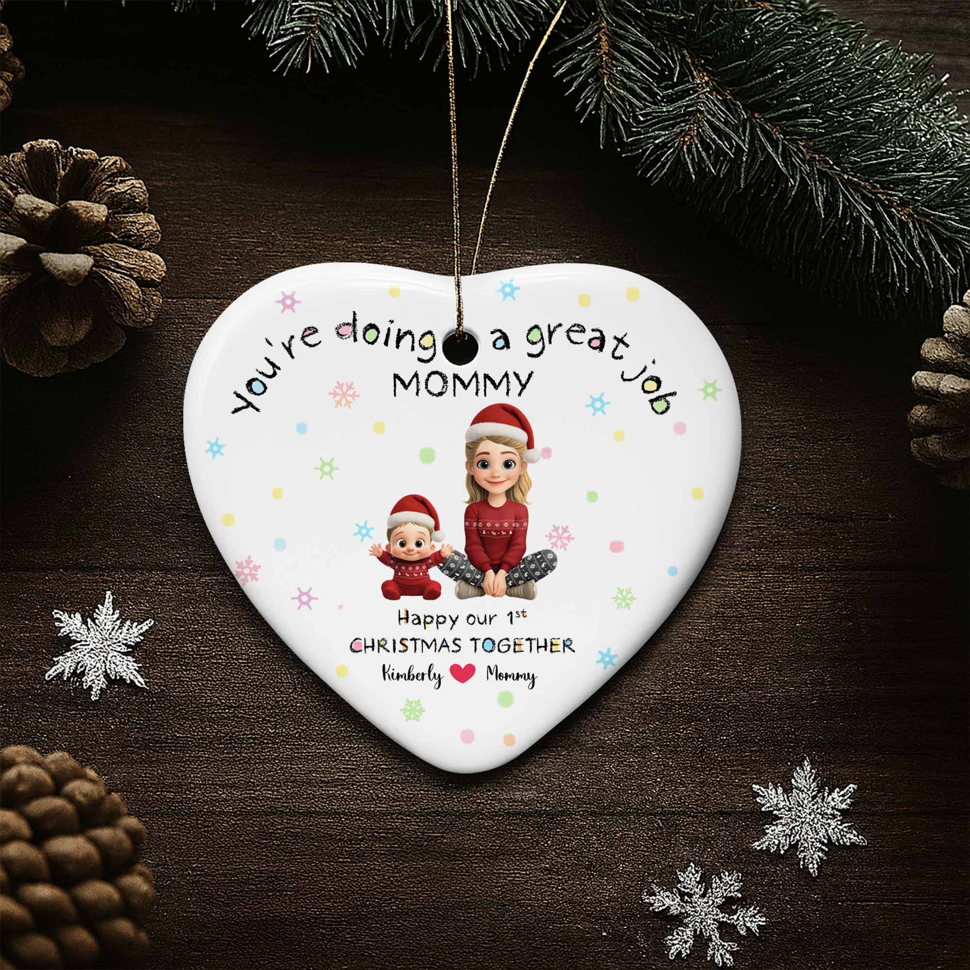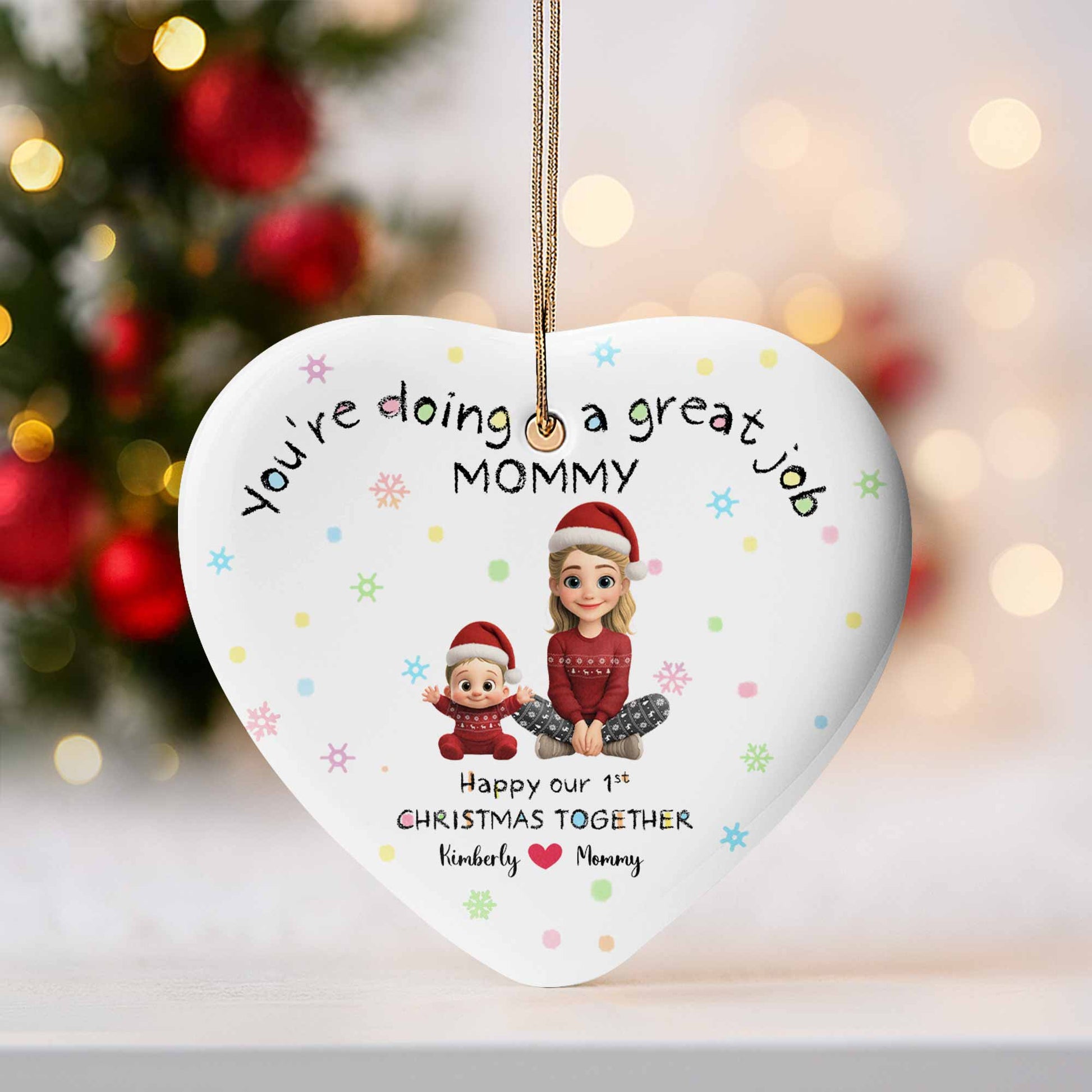 You're Doing A Great Job Mommy, Happy Our 1st Christmas Together - Personalized Custom Ceramic Ornament With Heart Shape - XMAS095_HCE
